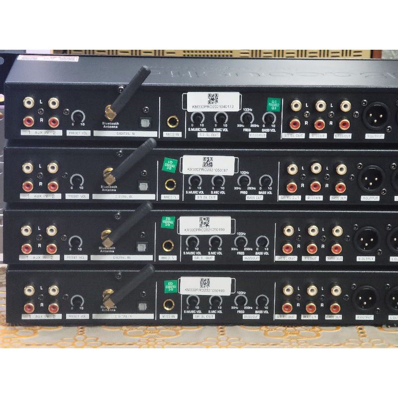 Tích hợp cổng quang bluetooth chống hú số. Nâng tiếng mic. Chỉnh cắt sub, đảo pha sub.