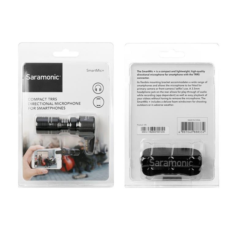 Micro thu âm Smartmic+ là một sản phẩm mới 2018 của hãng sản xuất Saramonic dựa trên bản nâng cấp của mic thu âm Smartmic. Smartmic+ là loại mic định hướng với khả năng lọc tạp âm tốt cho phép bạn gắn trực tiếp lên các dòng smartphone có cổng 3.5mm.Micro thu âm Saramonic Smartmic+