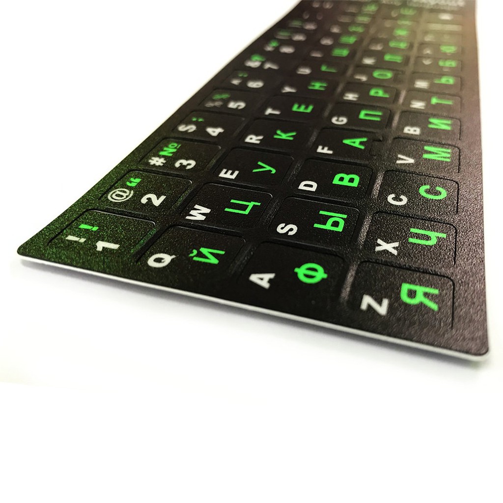Loại sản phẩm: Miếng dán bàn phím tiếng Nga, Nhật, Hàn, PhápMàu sắc: Nền đen chữ trắng