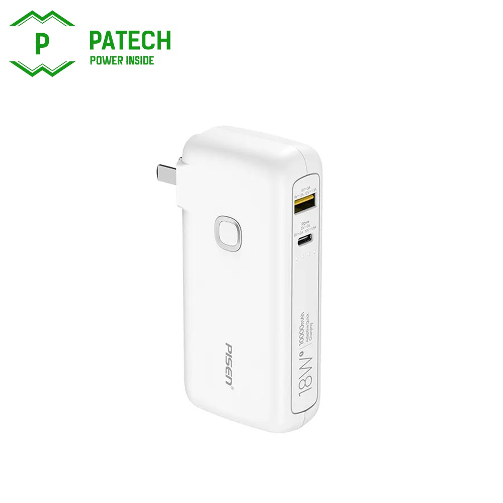 Sạc dự phòng kèm chân cắm Pisen Quick High Power Box 10000mAh,sạc nhanh 18W,an toàn,tiện dụng- Hàng Chính Hãng,BH 18 thá