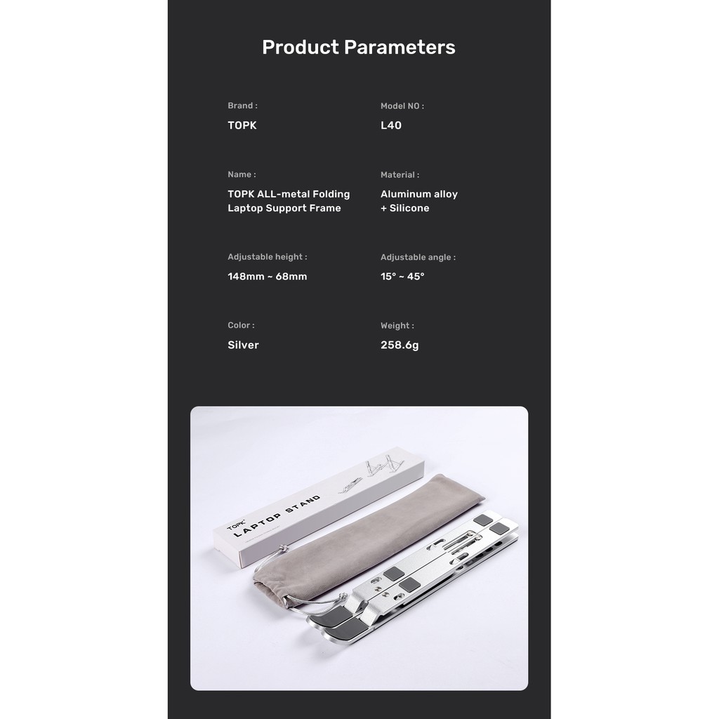 Đế Tản Nhiệt Macbook Laptop Nhỏ Gọn Di Động Có Túi Đựng Hợp Kim Nhôm Chính Hãng Topk
