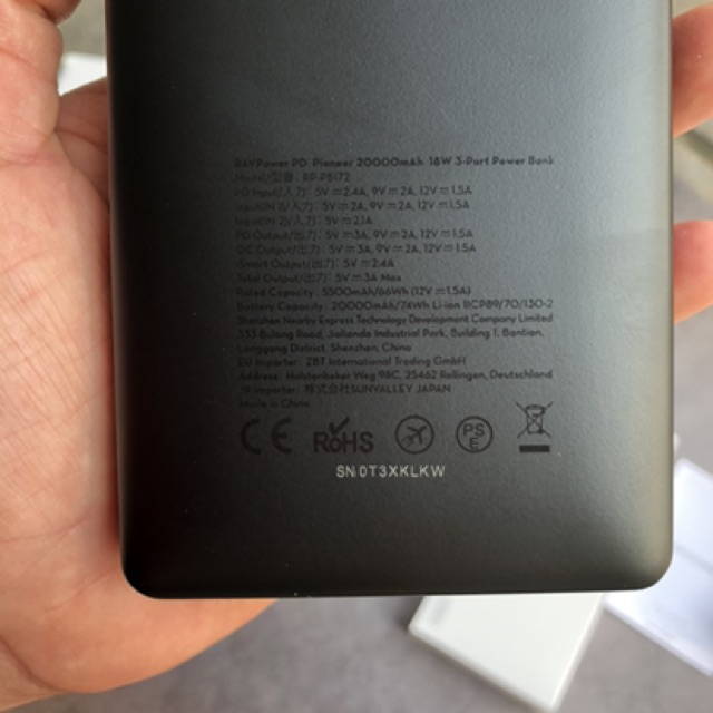 ⭐Sạc Dự Phòng Ravpower RP-PB172 - 20000mah, PowerDelivery 18W - Quick Charge 3.0✅Thông số kỹ thuật: