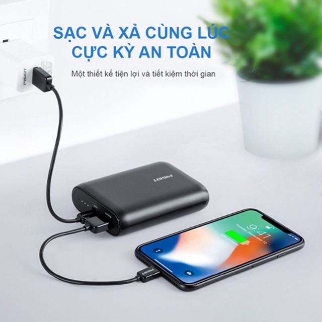 ✅ Dù thiết kế nhỏ gọn nhưng dung lượng của sạc lên tới 10.000mAh giúp sạc điện thoại từ 4-6 lần, iPad từ 1-2 lần và tốc độ sạc siêu nhanh lên tới 2.5 lần so với các loại sạc thông thường. Khi thiết bị của bạn đã được sạc đầy, pin sạc sẽ tự động ngắt để tránh gây tình trạng chai pin, quá tải nhiệt, quá tải điện áp hay chống xả gấp cho điện thoại