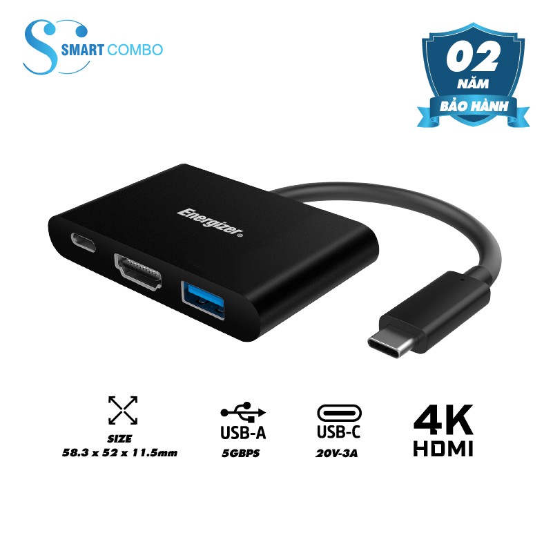 Máy tính & Laptop > Thiết Bị Lưu Trữ > USB & OTG || [Mã 44ELSALE2 giảm 7% đơn 300K] Bộ chuyển Usb-C3.1 Hub Energizer USB-A/ USB-C/ HDMI - HC303CV - Hàng chính hãngCòn hàng