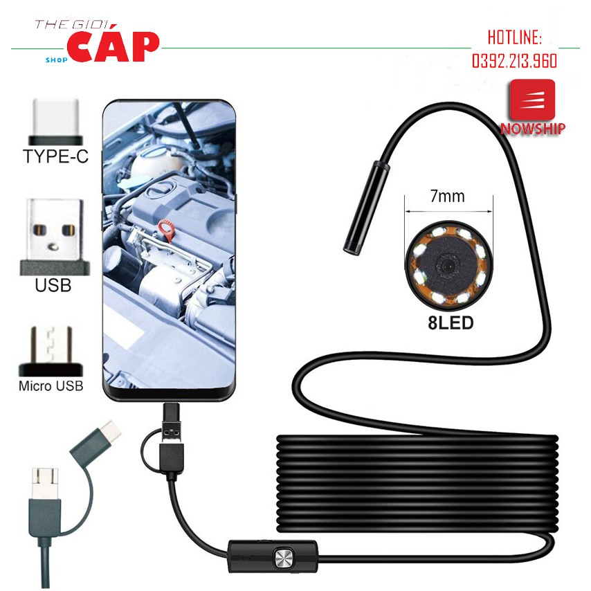 Camera Nội Soi Chống Nước Hỗ Trợ TYPE-C, MICRO USB OTG Android, PC, Laptop Dài 10M