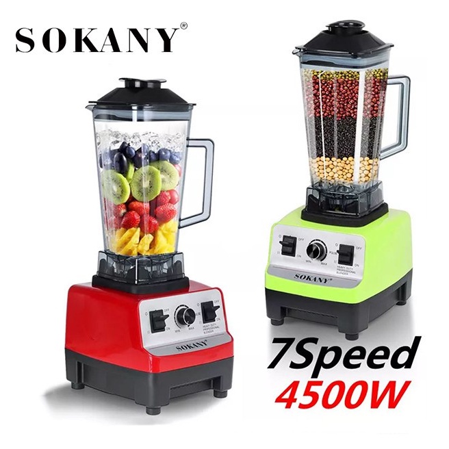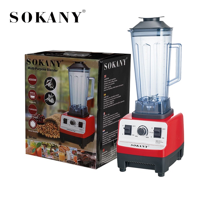 ⛵ Máy xay sinh tố SOKANY phục vụ cho công việc xay, nghiền hoa quả, ngũ cốc… tại các quán sinh tố, quán cafe, quán kinh doanh sữa đậu nành, sữa ngô, sữa mè đen… hoặc có thể sử dụng chiếc máy này để xay bột nghệ, gạo lứt… rất đa năng. Chiếc máy xay sinh tố công suất lớn này được sản xuất với công suất lớn lên tới 4500W nên nó có thể xay, nghiền được nhiều nguyên liệu một cách nhanh chóng, ngoài các nguyên liệu trên thì nó còn có khả năng xay được đá rất hiệu quả.