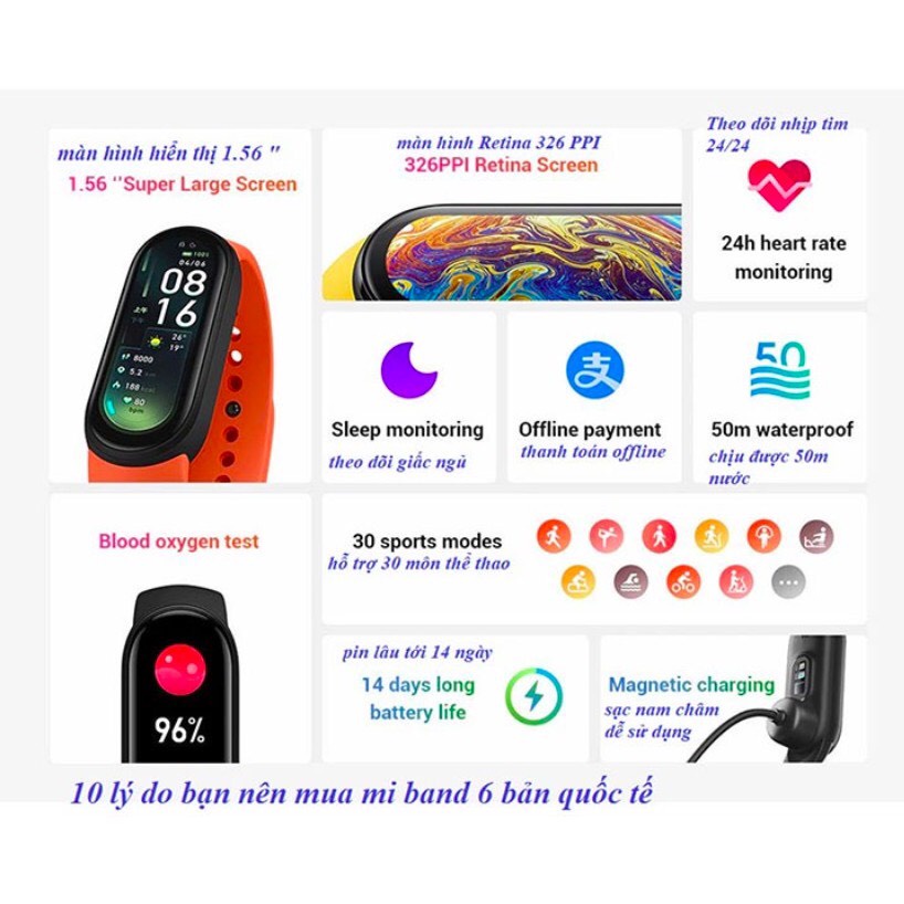 [BẢN QUỐC TẾ] Đồng hồ thông minh Xiaomi Mi Band 6 chính hãng Miband6 Mi Band6Thông số: