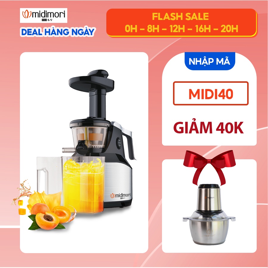 [Mã ELHA22 giảm 6% đơn 300K] Máy ép chậm Midimori MDMR-999 (250W) - Tặng 1 máy xay thịt đa năng Chopper (500W)
