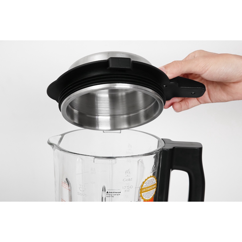 Riêng cối xay Borosilicate được chế tạo từ thuỷ tinh, dày tới 8mm, phủ inox 304 tràn viền, bảo đảm an toàn và dễ dàng vệ sinh. Cối xay có thể chịu nhiệt tới 300 độ C, được cấu thành bởi 5 lớp, bao gồm: