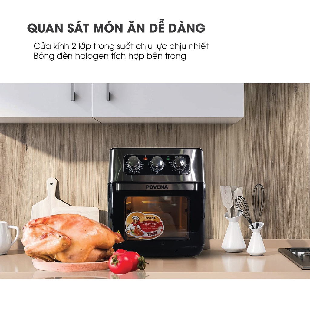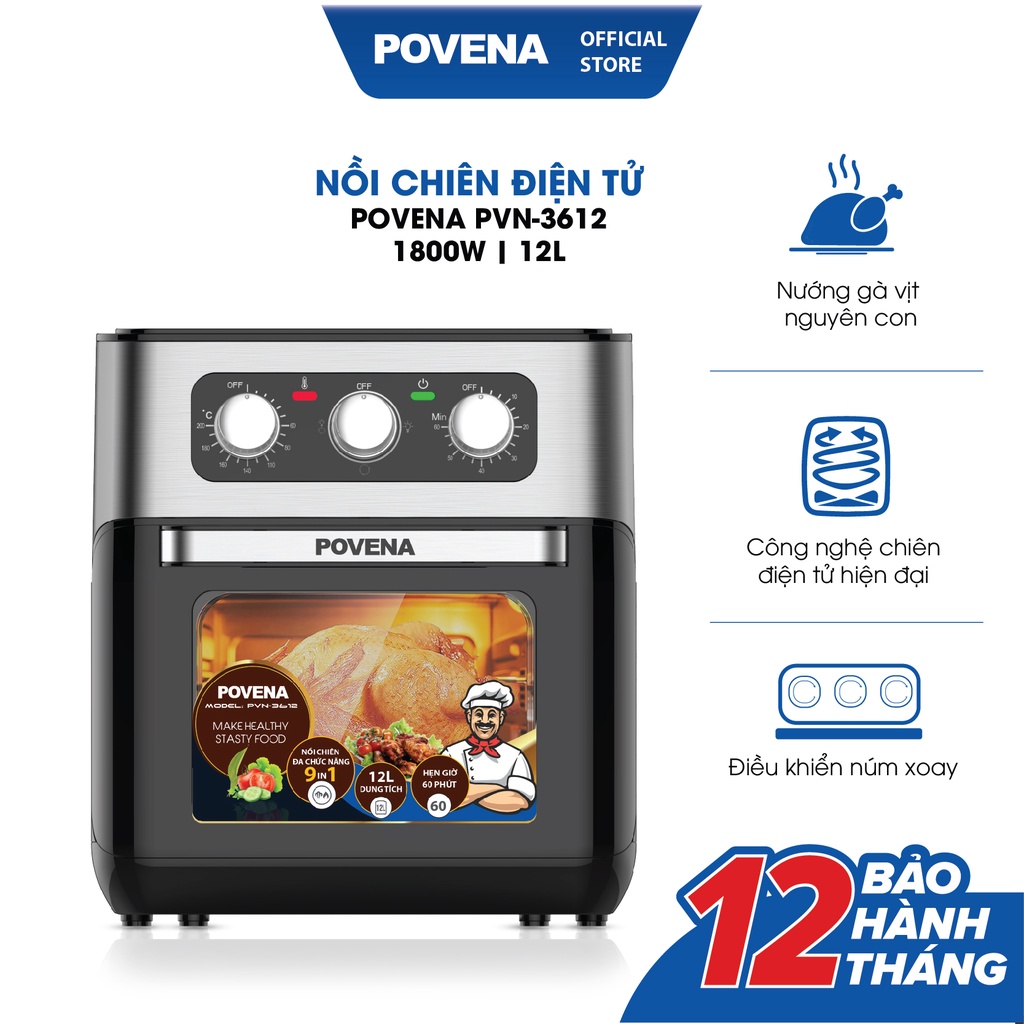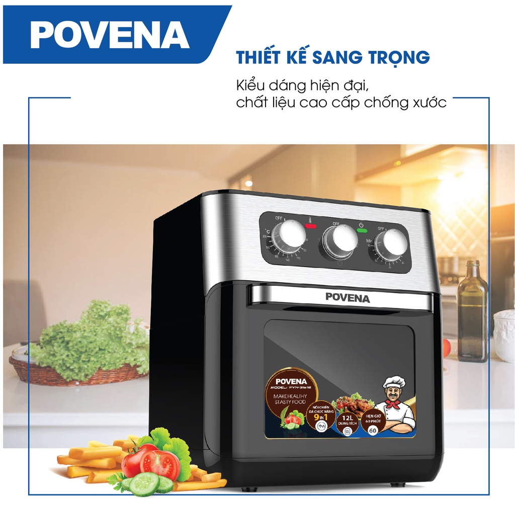 Giới thiệu [Mã BMBAU300 giảm 10% đơn 499K] Nồi Chiên Không Dầu POVENA 12L 1800W PVN-3612