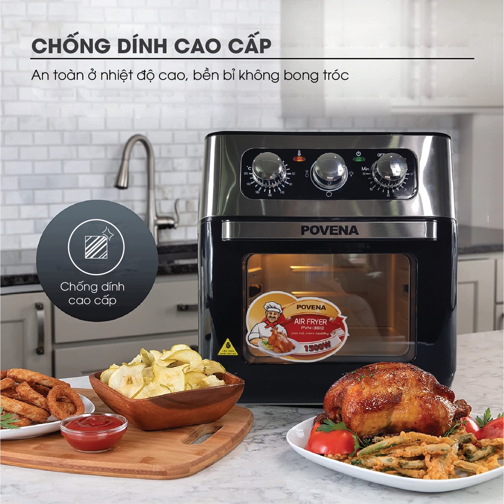 [Mã BMBAU300 giảm 10% đơn 499K] Nồi Chiên Không Dầu POVENA 12L 1800W PVN-3612