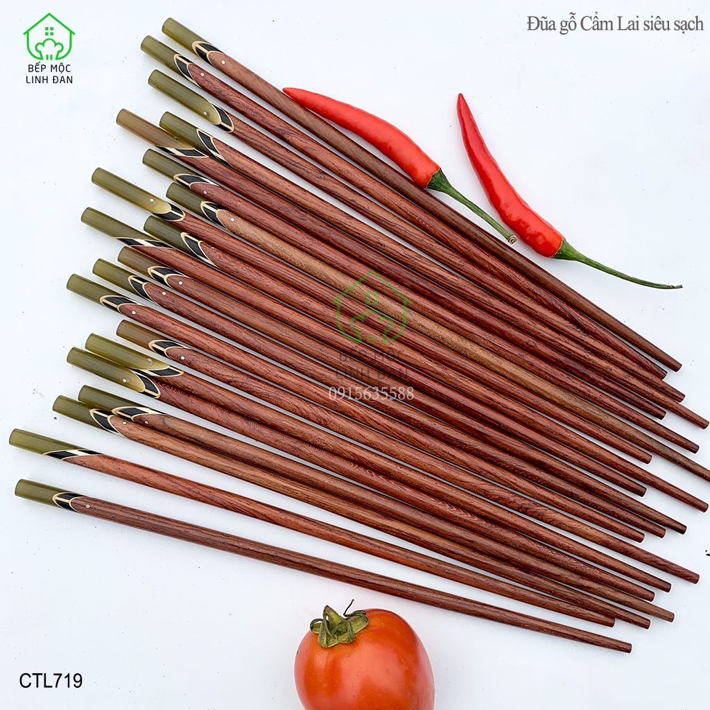 Giới thiệu [Mã BMBAU50 giảm 10% đơn 99k] Đũa gỗ Cẩm Lai siêu sạch cẩn thạch chéo màu sừng_Bộ 10 đôi tròn tặng hộp (CTL719)