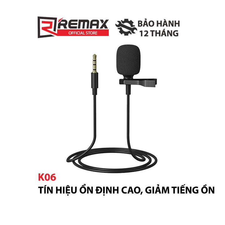 Thiết Bị Âm Thanh > Micro thu âm || [Mã BMBAU50 giảm 7% đơn 150K] Micro kẹp áo thu âm - ghi âm cho điện thoại Remax K06 Jack 3.5mm giảm tiếng ồnCòn hàng