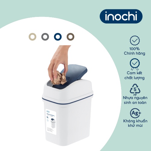Thùng rác nắp lật Inochi 5L (kèm ruột) Thân Trắng kem + Nắp Ghi sữa/ Xanh chàm/ Nâu café/ Be sữa