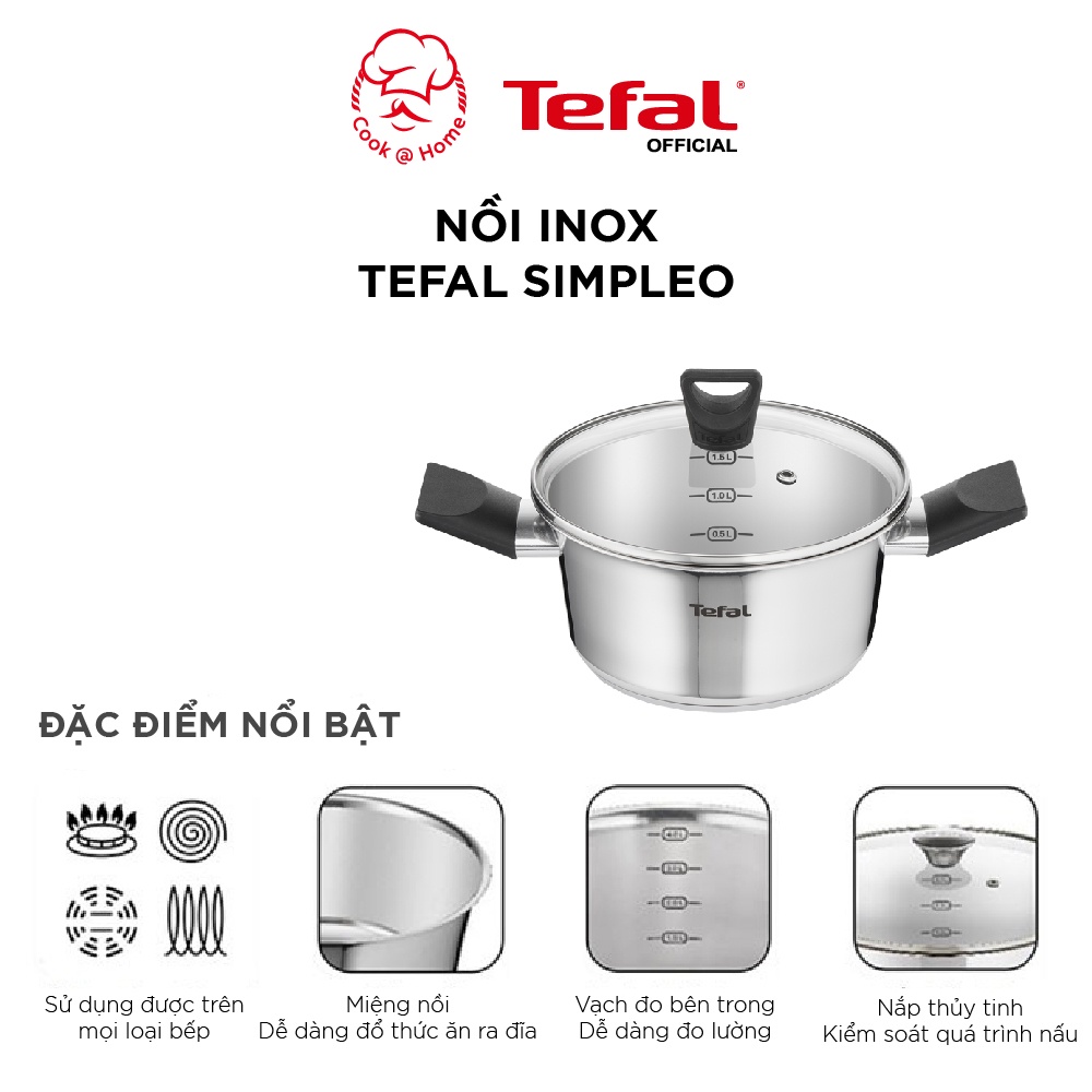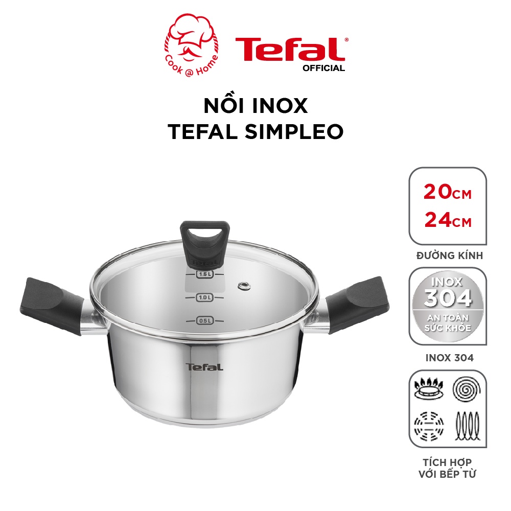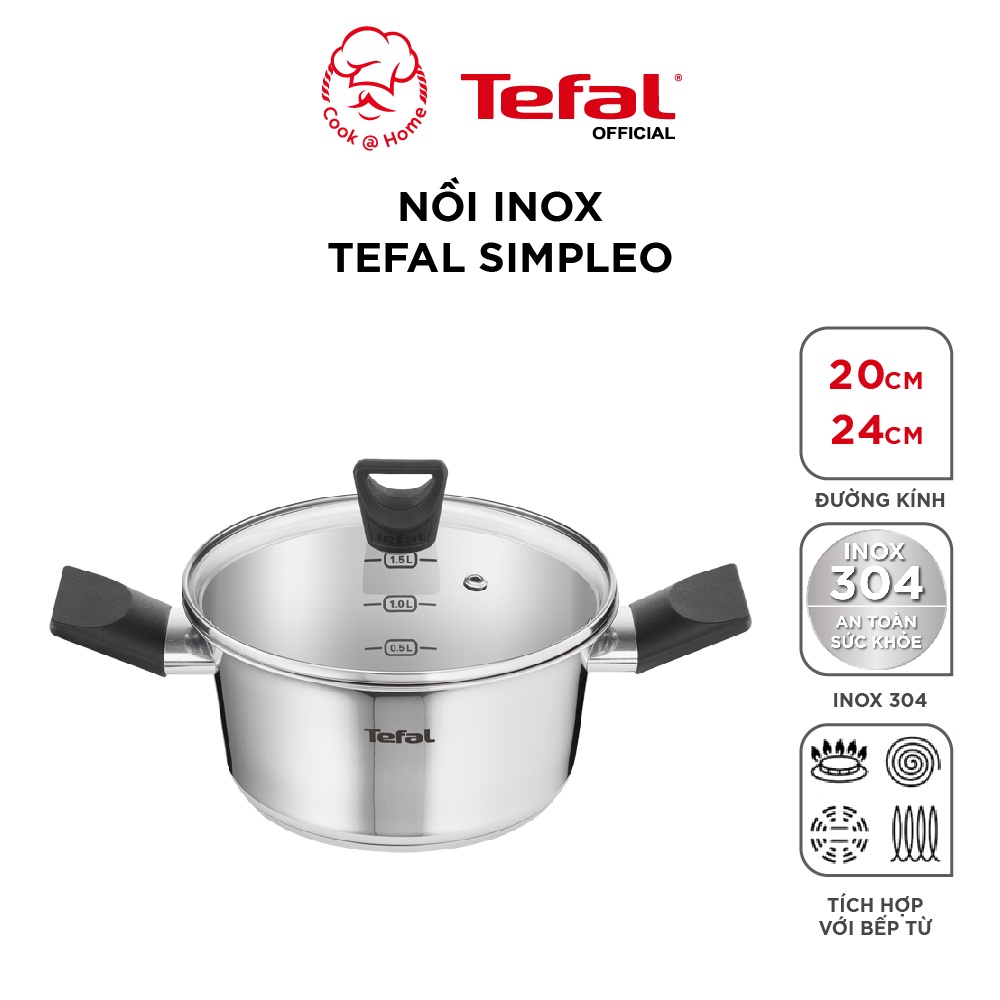 - NỒI INOX TEFAL SIMPLEO 20cm/24cm thiết kế từ Pháp được làm bằng inox 304 cao cấp, hỗ trợ cho việc nấu nướng nhiều kiểu, đảm bảo chất lượng inox 304 lên đến tận 5 năm.