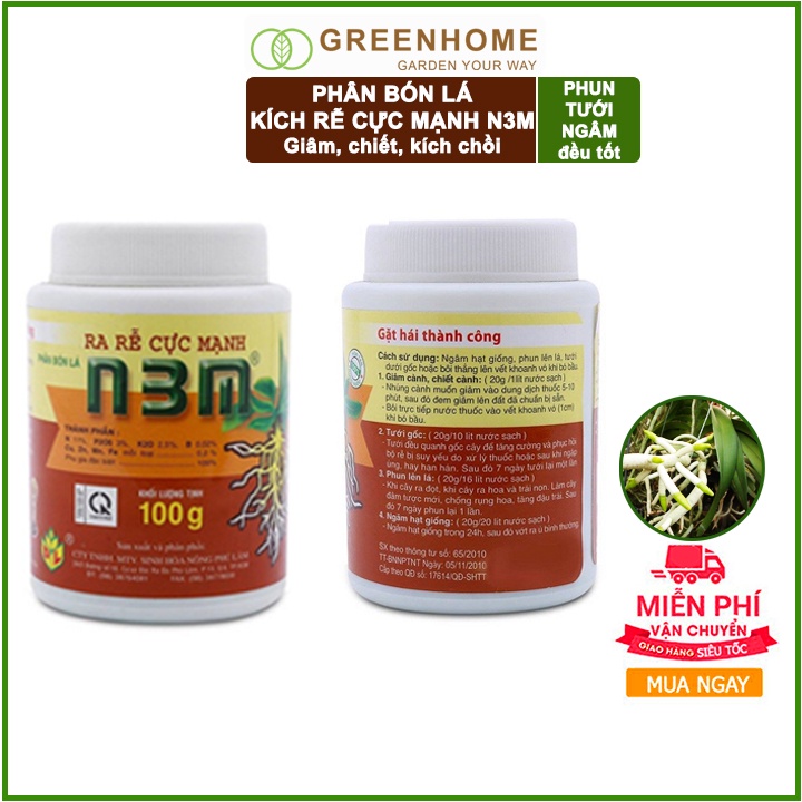 Giới thiệu Thuốc kích rễ N3M, hũ 100gr, siêu ra rễ, giâm, chiết cành, ngâm hạt giống |Greenhome