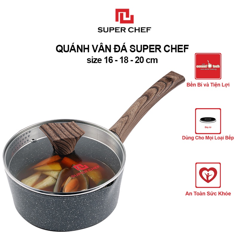 Nhà cửa & Đời sống > Dụng cụ nhà bếp > Nồi || [Mã BMBAU50 giảm 7% đơn 99K] Nồi Cán Dài/ Quánh Vân Đá Super Chef Dày 4mm Siêu Bền Bỉ, Tiện Lợi (16-18-20)Còn hàng