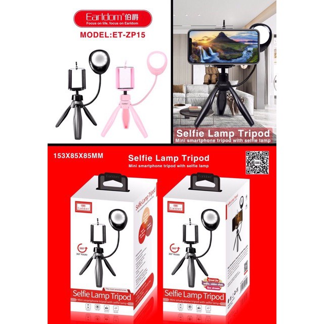 Tripod Kèm Đèn Hỗ Trợ Selfie Earldom ZP-15- Livestream, selfie đã trở nên quá thuận lợi khi Earldom ra mắt sản phẩm Tripod Kèm Đèn Hỗ Trợ Selfie Earldom ZP-15, với rất nhiều những ưu điểm dưới đây: