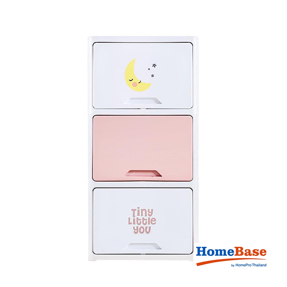 Giới thiệu HomeBase STACKO Tủ nhựa 3 ngăn kéo hoạt hình TINY W45xH90xD32cm màu hồng pastel