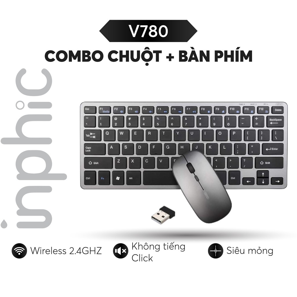 Combo Bàn Phím Và Chuột Không Dây Inphic V780 Siêu Mỏng và Gọn Nhẹ Chính Hãng