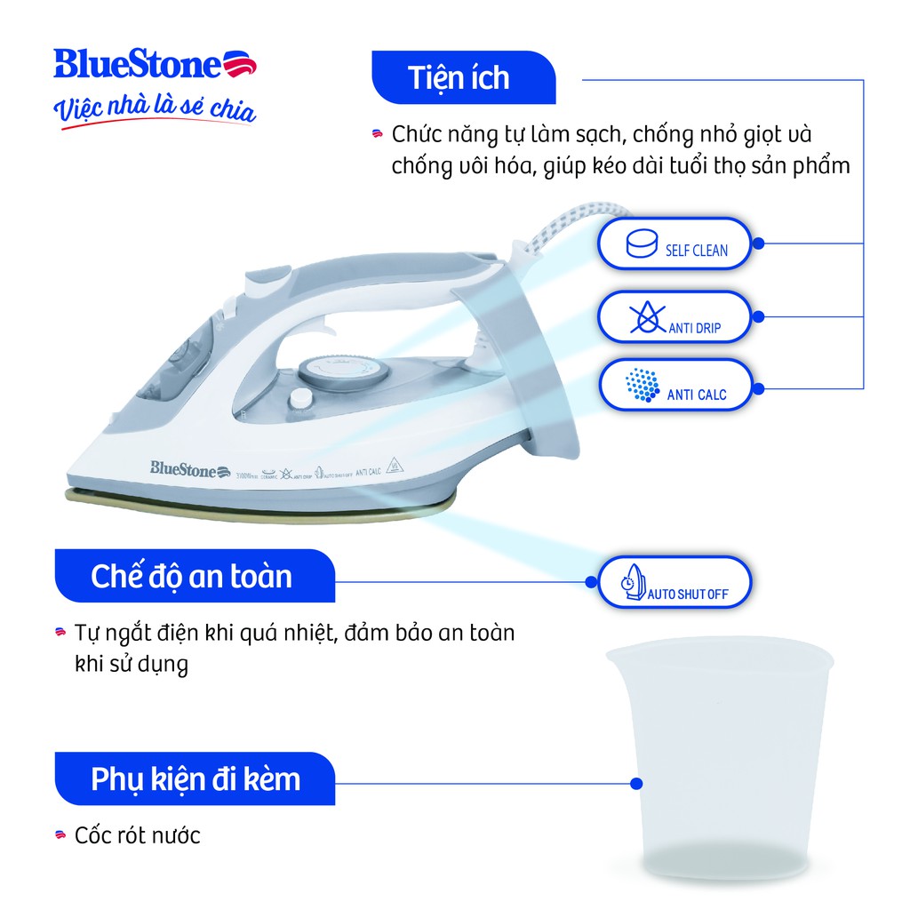 - Bàn ủi hơi nước BlueStone sẻ chia tiện ích, ""trợ thủ"" đắc lực giúp bạn chăm sóc gia đình tươm tất hơn.