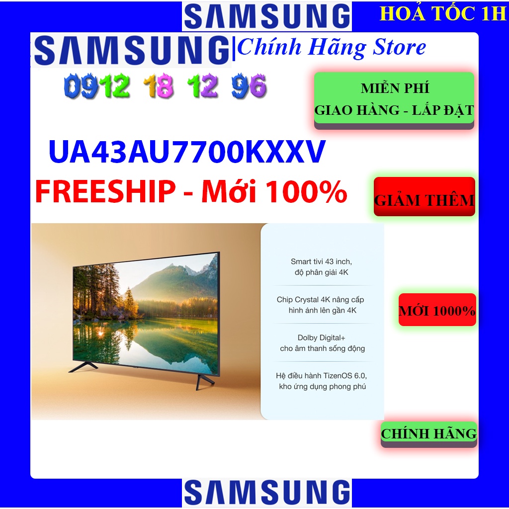 Tivi Samsung 43AU7700 Smart UHD 4K 43 inch UA43AU7700 - MỚI 1000% - BẢO HÀNH CHÍNH HÃNG 24 THÁNG.-- MIỄN PHÍ TPHCM ( TRỪ CỦ CHI - HÓC MÔN - CẦN GIỜ )