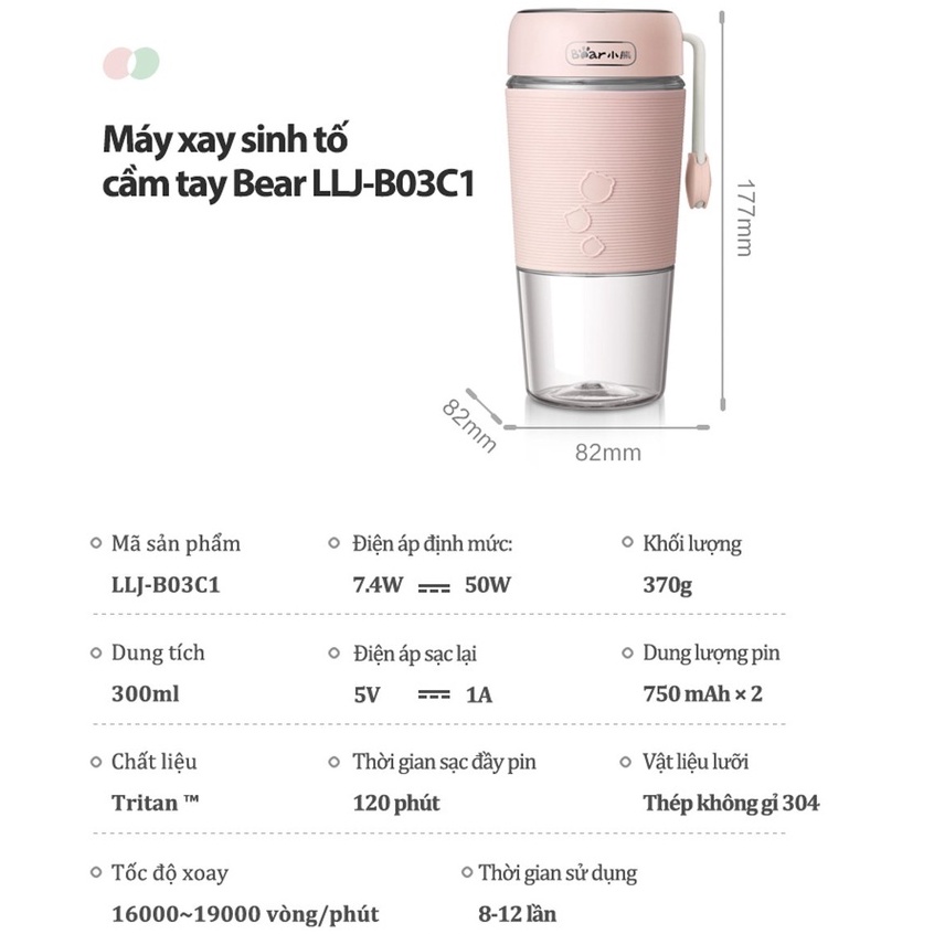 Giới thiệu [Mã ELHA22 giảm 6% đơn 300K] Ly Xay Sinh Tố Cầm Tay Đa Năng Bear 300ML LLJ-B03C1 - Hàng Chính Hãng - Bảo Hành 18 Tháng