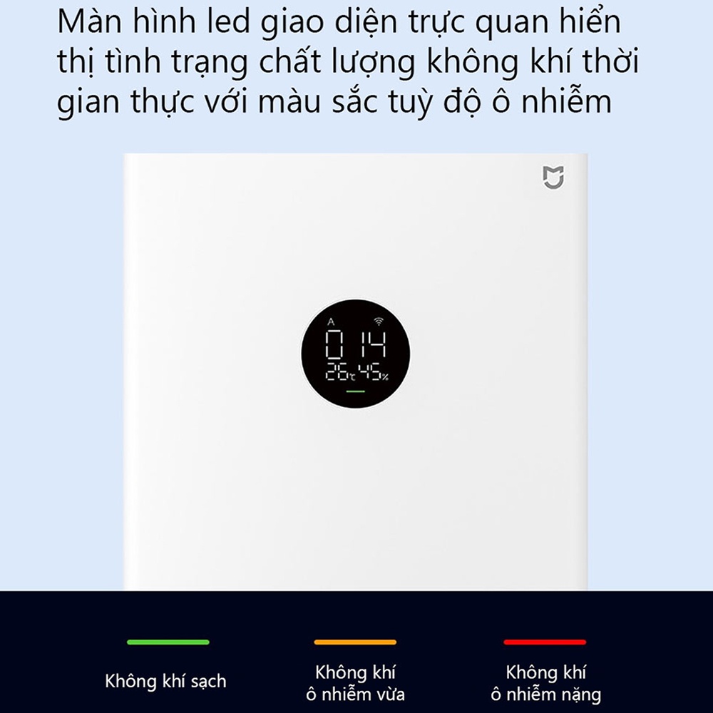 Máy lọc không khí Mijia Air Purifier 4 Lite được trang bị cảm biến Laser có độ chính rất xác cao, cung cấp kết quả dựa trên chất lượng không khí ở trong nhà ngay thời gian thực cực kỳ chính xác. Khi hệ thống dò được chất lượng không khí kém, nó sẽ hiện thanh màu đỏ, màu cam cho chất lượng bình thường và màu xanh lá cây là chất lượng không khí tốt nhất.