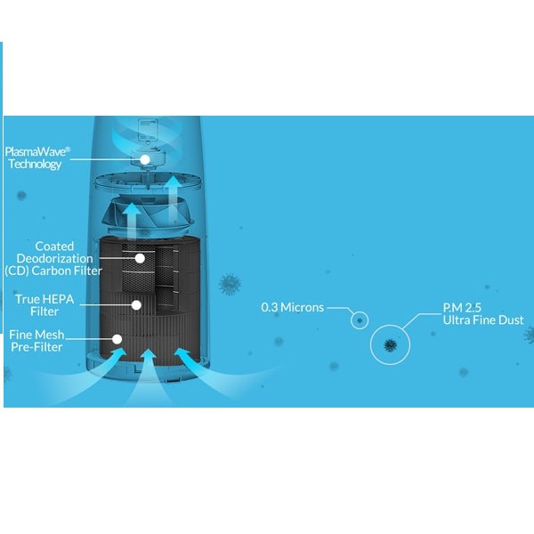 Plasmawave là một công nghệ phân tán để trung hòa trong không khí, đồng thời có thể lọc bụi hiệu quả, lọc nhiều dạng vi khuẩn và virus khác nhau, cung cấp không khí trong lành và an toàn hơn. Plasmawave chủ động tấn công, tạo ra hệ thống lọc khí 4 cấp độ: Làm sạch + khử trùng hiệu ứng kép để tái tạo không khí trong lành.