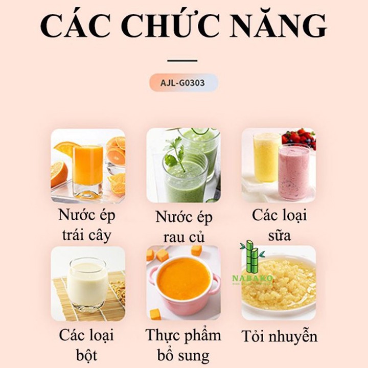 * Tính năng: Sạc 1 lần trong 2 tiếng, có thể ép 8-12 cốc sinh tố.