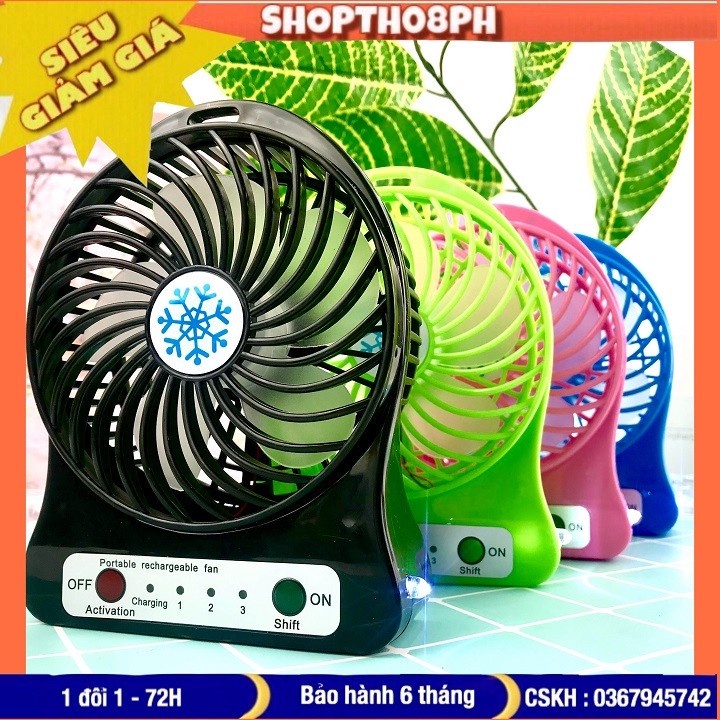 - Quạt mini siêu mát có thể tùy chỉnh ba tốc độ theo ý thích, có đèn led sử dụng như đèn pin, cấp nguồn bằng sạc pin.