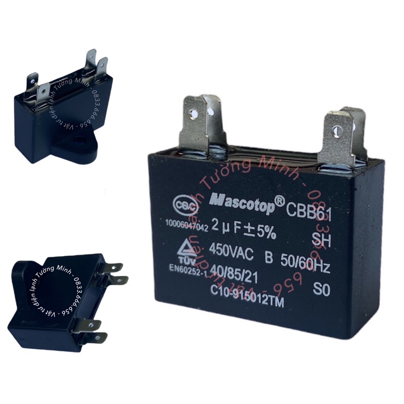 Thiết Bị Điện Gia Dụng > Thiết bị điện gia dụng lớn > Thiết bị làm mát > Điều hòa || [Mã ELHA22 giảm 5% đơn 300K] Tụ quạt tụ điện 2uF 450VAC chính hãng Mascotop chất lượng cao Capa tụ quạt điều hoà 2uFCòn hàng