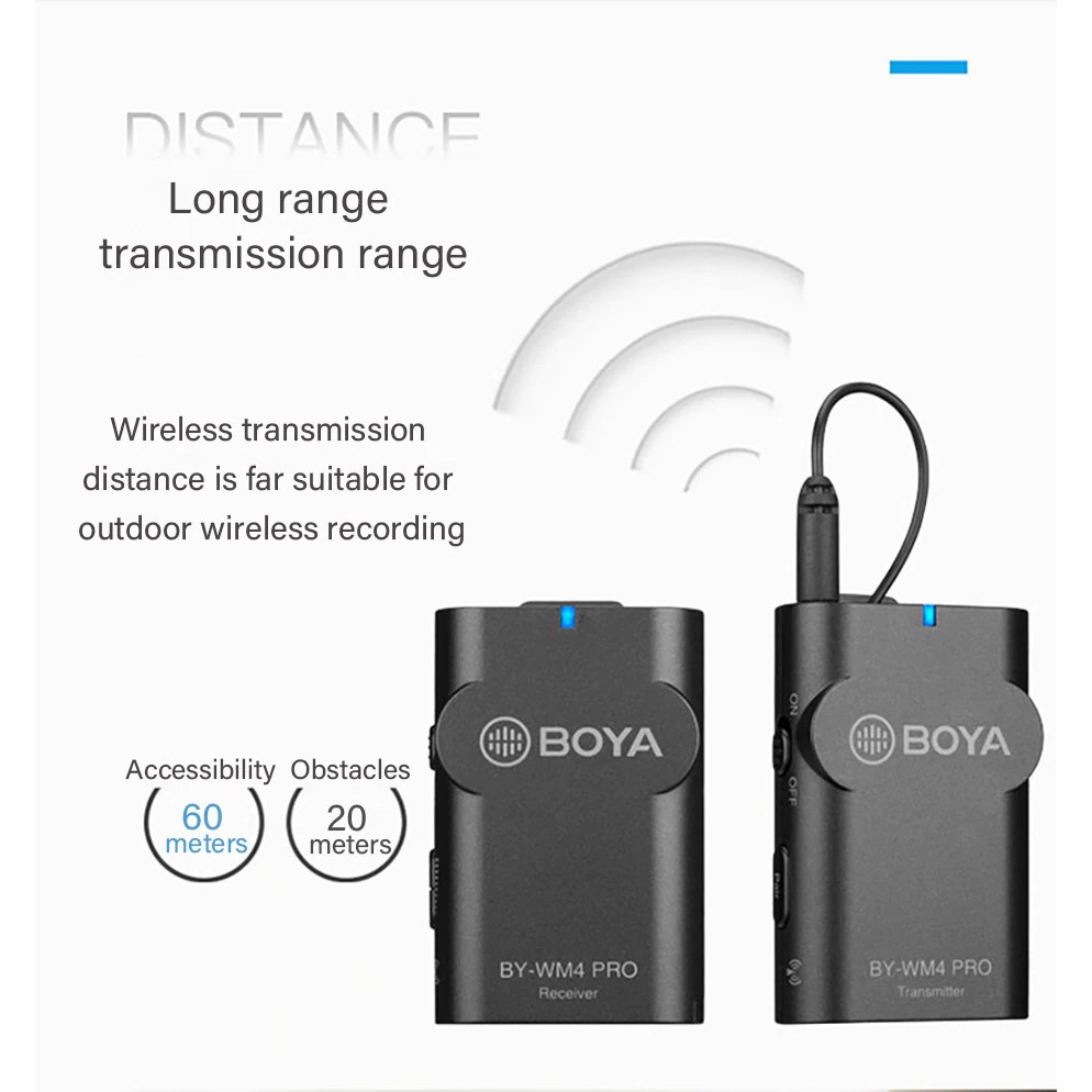Bạn đang cần tìm micro thu âm không dây, thì Boya BY-WM4 Pro là sự lựa chọn hợp lý nhất trong phân khúc 2tr đồng. Sản phẩm với thiết kế nhỏ gọn, sử dụng pin tiểu AA dễ dàng sử dụng và mang đi. Sản phẩm có khả năng chống nhiễu cao, khoảng cách sử dụng lên tới 50m. Sản phẩm được tích hợp 2 trong 1, vừa có thể sử dụng máy ảnh hoặc điện thoại thông minh. Mọi người cùng mình đi xem chi tiết sản phẩm nhé.Giới thiệu Boya BY-WM4 Pro