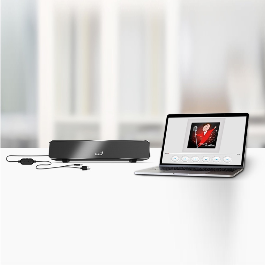 - Loa USB SoundBar 100 mang đến âm thanh sắc nét, mê hoặc, sống động, mang đến cho bạn trải nghiệm âm thanh vòm tuyệt vời như rạp phim, điều chỉ có ở những thiết bị âm thanh cao cấp.