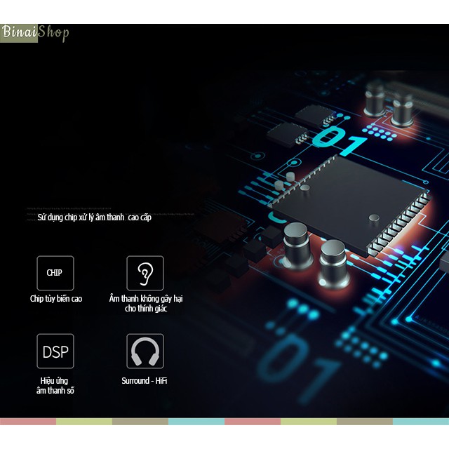 - Sử dụng chip tùy biến âm thanh công nghệ tiên tiến, cho phép tinh chỉnh DSP (hiệu ứng âm thanh số) và xuất âm thanh vòm (Surround). Chất lượng âm thanh ổn định, đảm bảo không gây hại cho thính giác người sử dụng.