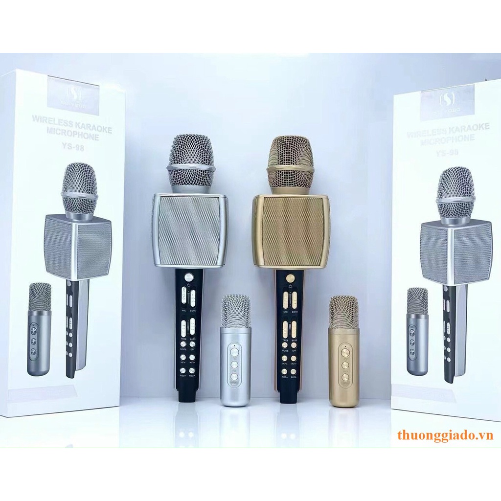 Mic Karaoke kèm loa bluetooth SU-YOSD YS-98 chính hãng (kèm mic phụ để song ca)Micro karaoke bluetooth SU YOSD YS-98 là dòng sản phẩm tích hợp 2 chức năng: loa bluetooth để nghe nhạc và micro hát karaoke với chất lượng âm thanh cực đỉnh. Ưu điểm của dòng sản phẩm là màu sắc kim loại sáng bóng, sang trọng cùng hình dáng nhỏ gọn, tiện lợi