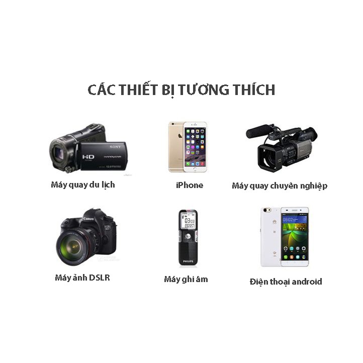 Mic cũng có thể sử dụng cho nhiều thiết bị như smartphone, máy ảnh, máy quay phim, laptop, PC...