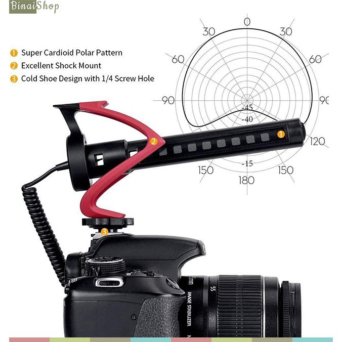 - Micro super cardioid có dải tần đáp ứng rộng và độ nhạy cao, cho âm thu trung thực, loại bỏ tạp âm nhiễu phía sau micro.