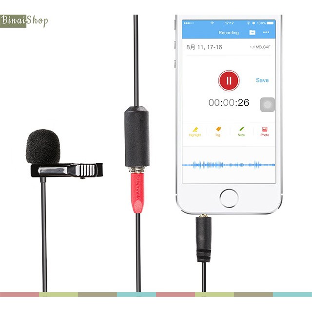keyword: micro gài áo, micro lavalier, micro cho smartphone, micro cho điện thoại, micro saramonic, saramonic sr-lmx1+.