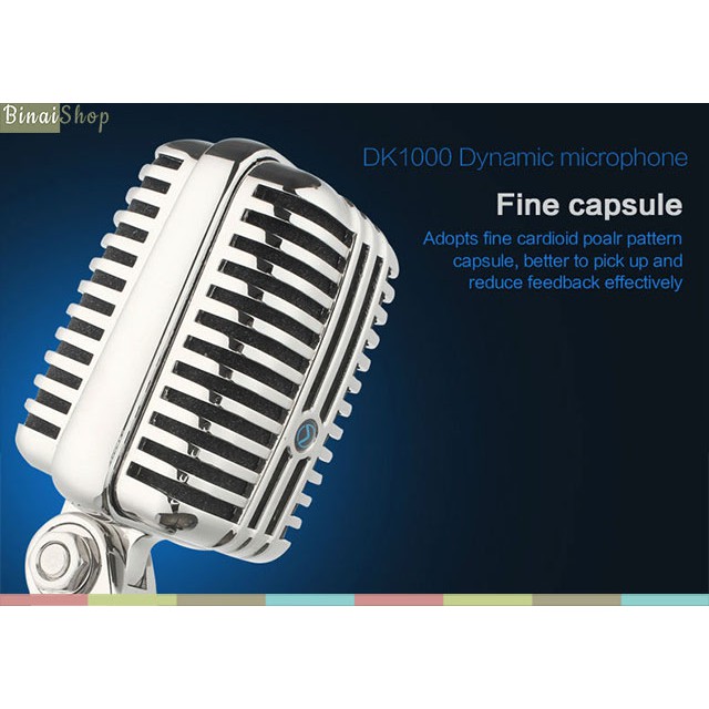 - Micro sân khấu Alctron DK1000 là micro dynamic dùng trong biểu diễn nghệ thuật, có thiết kế cổ điển, mang phong cách của những thập niên 40, 50 của thế kỉ trước.