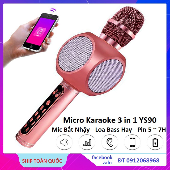 Micro bluetooth hát karaoke tích hợp loa bass hay YS90, mic bắt giọng, âm thanh trong lớn, gắn usb, thẻ nhớ, cổng 3.5Micro bluetooth hát karaoke tích hợp loa bass hay YS90 là phiên bản mới nhất của dòng micro Bluetooth Karaoke kèm loa YSD đình đám trên thị trường. Đây là thiết bị giúp kết nối với điện thoại Smartphone thông qua sóng Bluetooth.