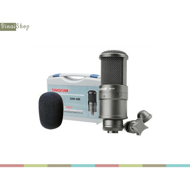 - Micro condenser Takstar SM-8B là micro sử dụng phantom 48v, có màng thu lớn cho âm thanh mịn, tự nhiên và tiếng ồn thấp.
