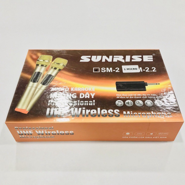 - Trong số đó dòng sản phẩm micro không dây đến từ thương hiệu Sunrise, với mẫu mã độc đáo và chất lượng hút âm rất cao, tiêu biểu là bộ micro không dây Sunrise SM-2