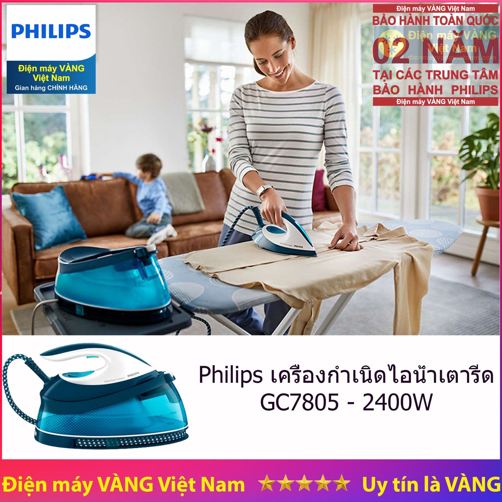 🔵 Bàn ủi hơi nước không cần chỉnh nhiệt độ Philips GC7805 (Xanh) - Hãng phân phối: