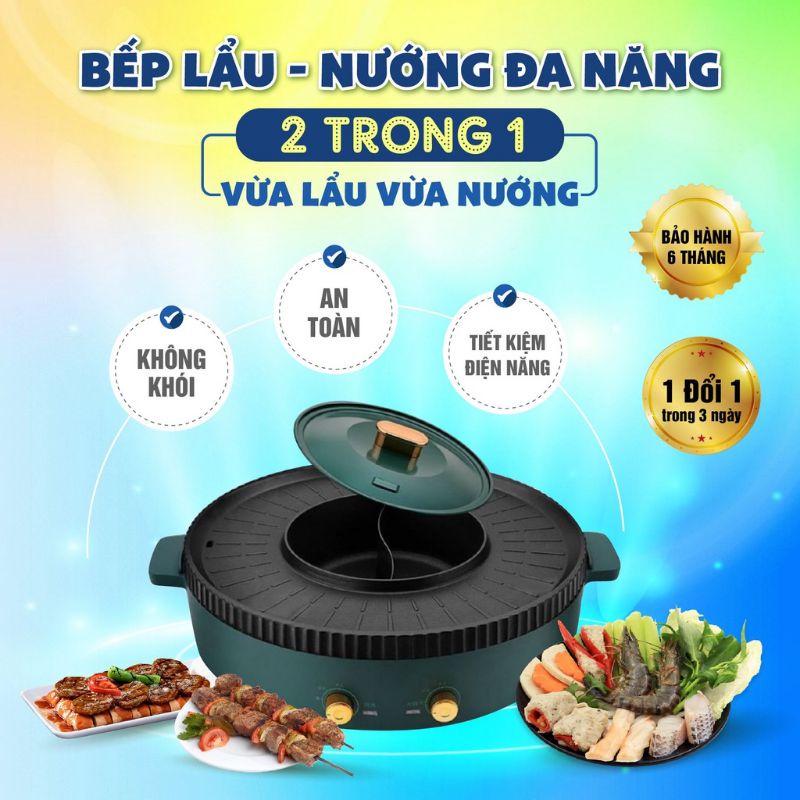 Bếp Nướng Lẩu 2 In 1 Đa Năng 2 Ngăn, Nôì Nấu Lẩu Điện 2 Trong 1 Không Khói Cap Cấp - SIÊU THỊ XHOME========================================