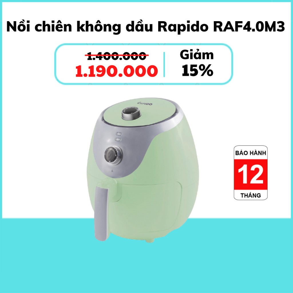 [Mã 254ELSALE giảm 7% đơn 300K] [HÀNG CHÍNH HÃNG] Nồi chiên không dầu Rapido RAF4.0M3 (Bảo hành 1 năm)