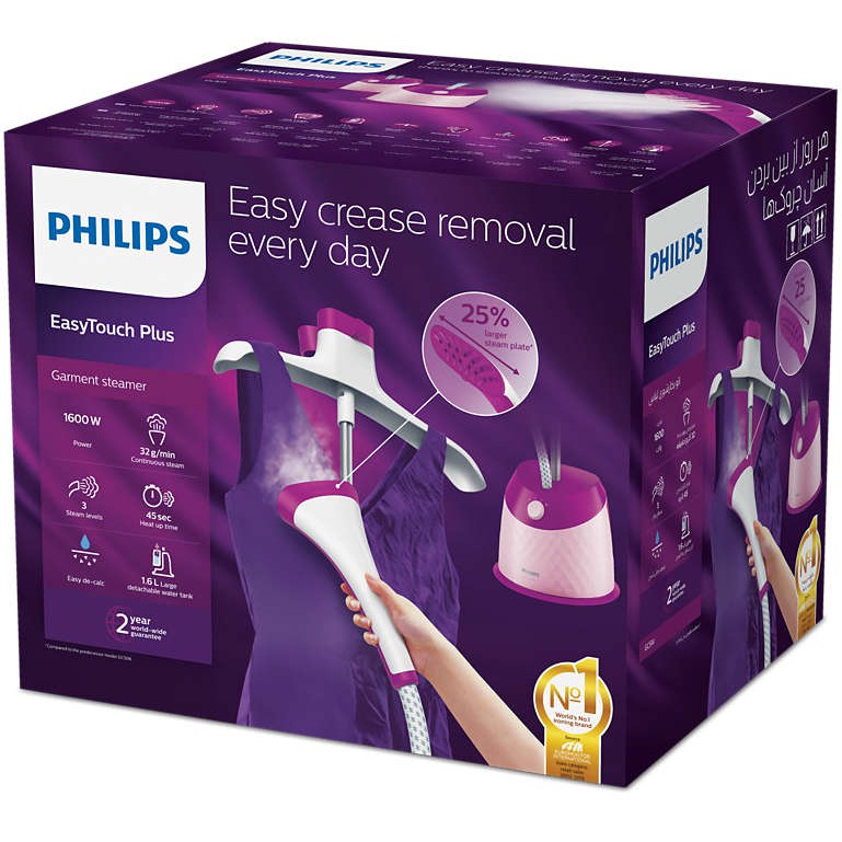 Bàn ủi hơi nước đứng Philips GC514 1600W (Hồng tím) - Hàng nhập khẩu:Là phẳng mọi nếp nhăn nhanh chóng