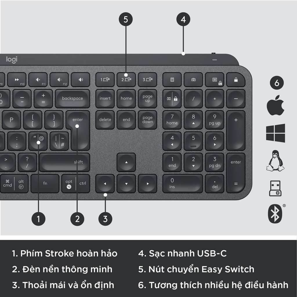 Máy tính & Laptop > Chuột & Bàn Phím > Bàn Phím Máy Tính || [Mã ELMALL10 giảm 10% đơn 500K] Bàn phím không dây Bluetooth Logitech MX Keys - đa thiết bị, sạc nhanh, Mac/ PCCòn hàng