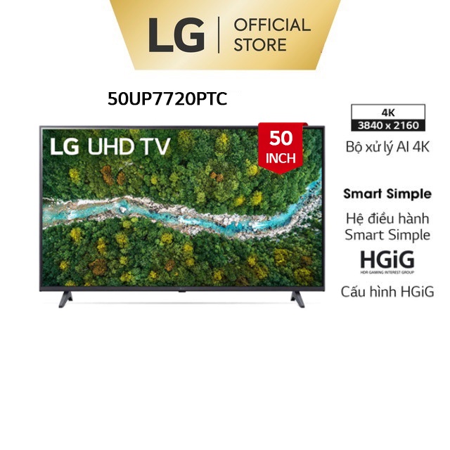 [Mã ELLGHOT giảm 5% đơn 3TR] Smart UHD Tivi LG 50 Inch 4K 50UP7720PTC - Model 2021 - Miễn phí lắp đặt