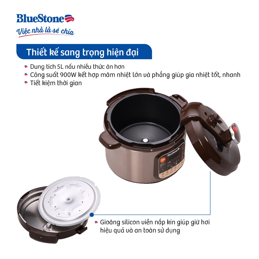 Giới thiệu [Mã ELHADEV giảm 4% đơn 300K] Nồi áp suất BlueStone PCB-5748 - Bảo hành 24 tháng - Hàng Chính Hãng